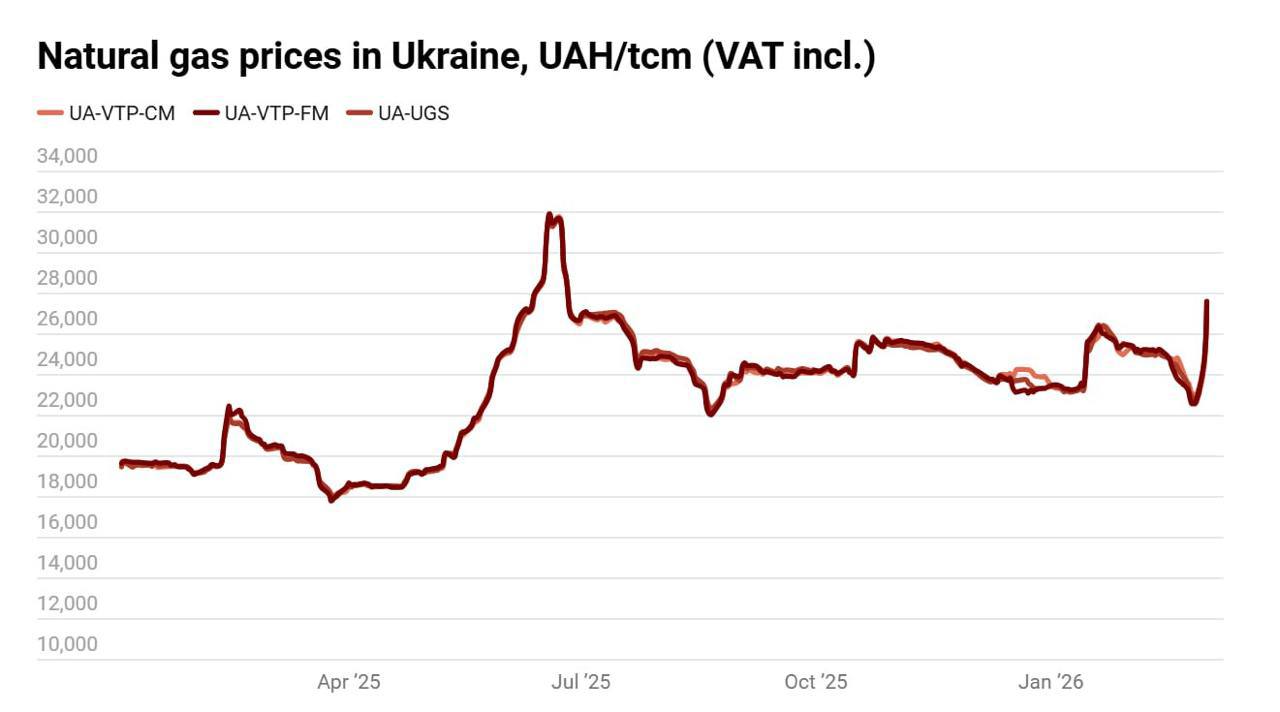 Подорожчання відбулося за останні два дні через бойові дні на Близькому Сході. У вівторок, 3 березня, ціна за тис. куб. м газу сягнула 27 тис. 800 грн. Це найвища ціна на українському ринку з червня 2025 року. Але зростання цін фіксується менше ніж в Європі. Про це пише ExPro Consulting, фахівці якого слідкують за цією галуззю в Україні.