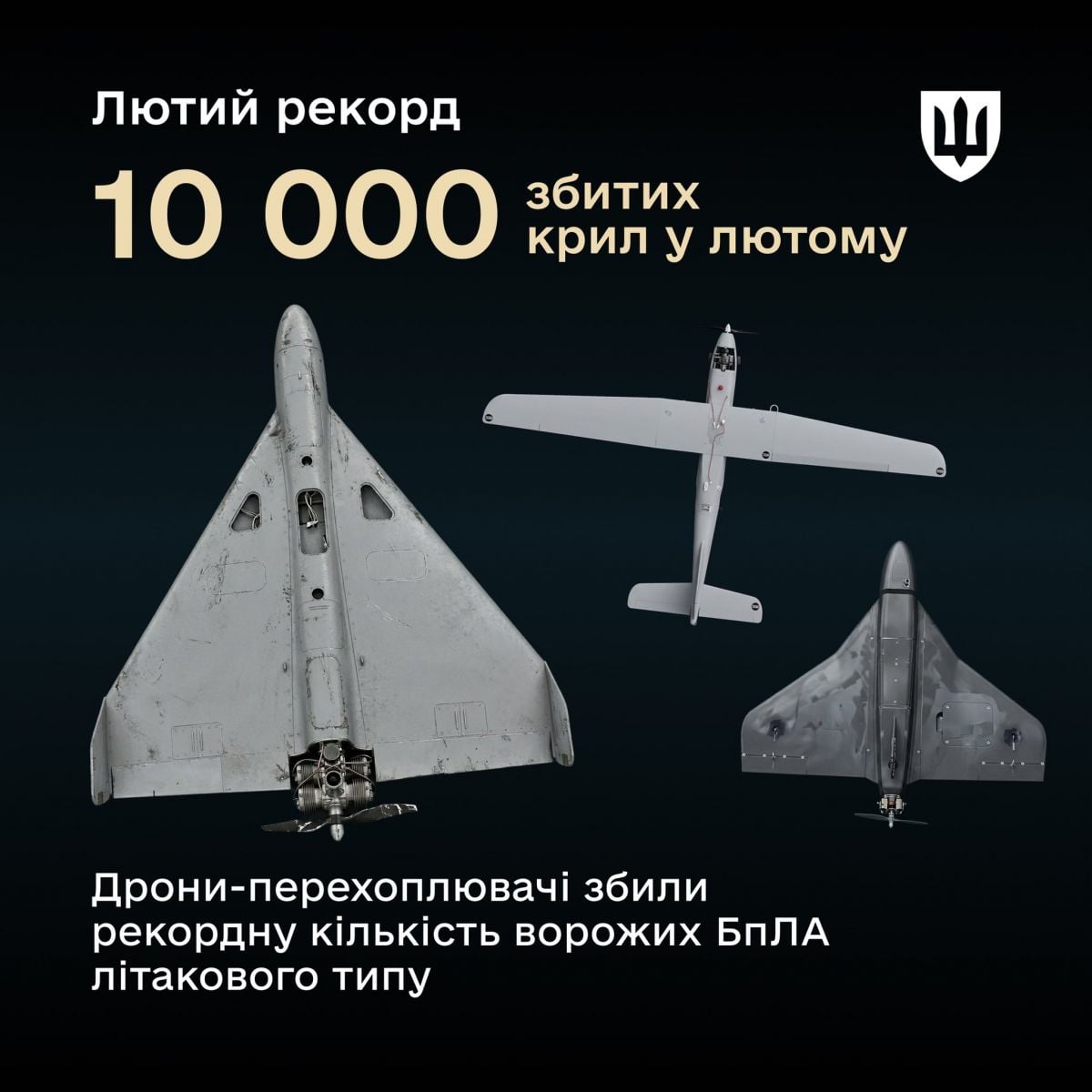 Українська «мала» ППО поставила рекорд. У лютому Сили оборони збили дронами-перехоплювачами понад 10 тисяч ворожих безпілотників літакового типу, зокрема «Шахед» і «Гербера», — повідомляє прес-служба Міноборони.