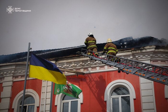 Також сьогодні росіяни близько 09.30 атакували адмінбудівлю у місті Новгород-Сіверський. Виникла пожежа, були пошкоджені також навколишні будівлі й автомобілі.
