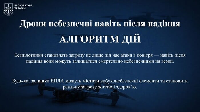 У прокуратурі наголошують, що безпілотники можуть бути небезпечними навіть після падіння:
