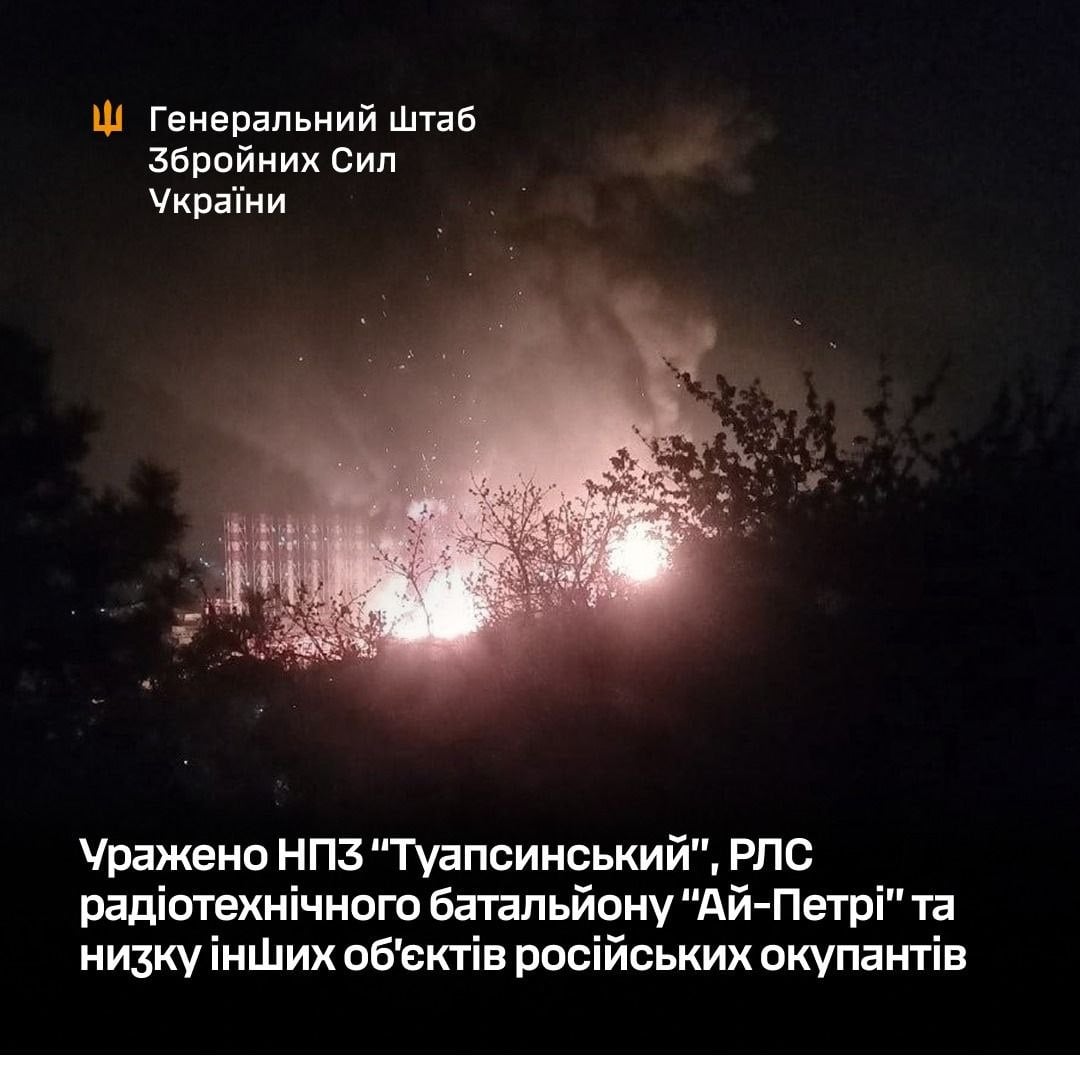 Генштаб ЗСУ підтвердив нічний удар по Туапсинському НПЗ. Фото: