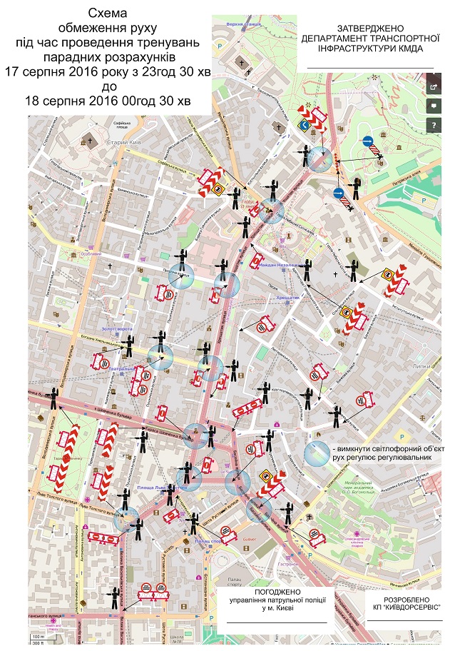 З 23.00 до 0.30 буде перекрито рух автотранспорту від Бессарабської площі до Європейської площі.