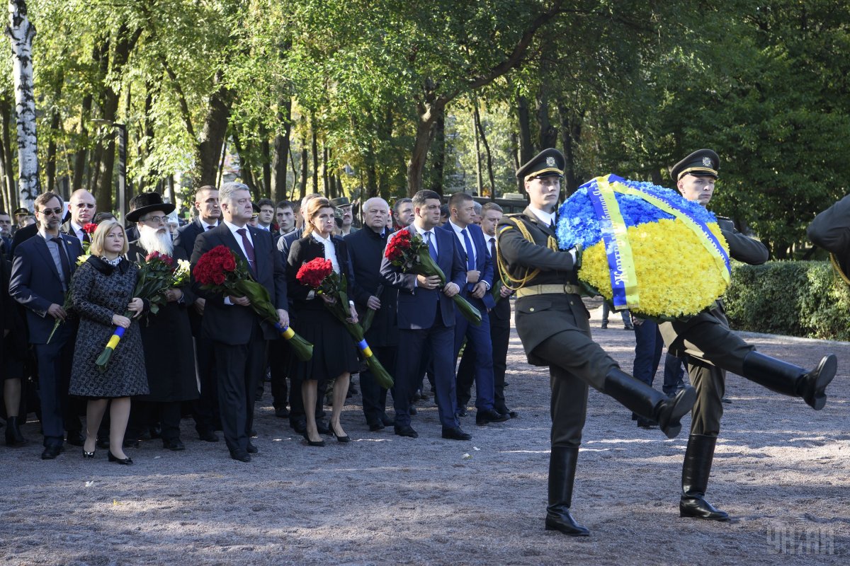 Перші особи держави згадують про трагедію у соцмережах. Президент України Петро Порошенко на сторінці в Facebook назвав масові розстріли спільною трагедією українського та єврейського народів.