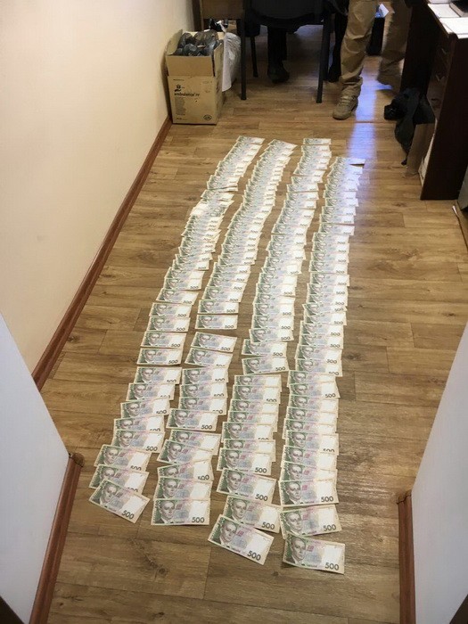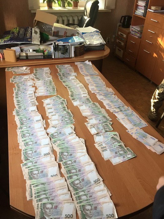 "Оперативники задокументували, що перший заступник вимагала від підприємця 410 тис. грн, що становило половину від суми виконаних робіт. Під час обшуку в службовому кабінеті посадовця правоохоронці виявили всю суму хабара«, — повідомляють в СБУ.