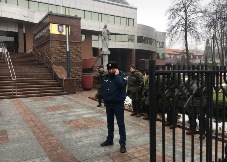 Приміщення суду по периметру охороняє поліція. До суду прийшла також підтримка соратника Саакашвілі, зокрема, люди з шевронами УНСО. У залі суду перебуває і сам Михайло Саакашвілі.